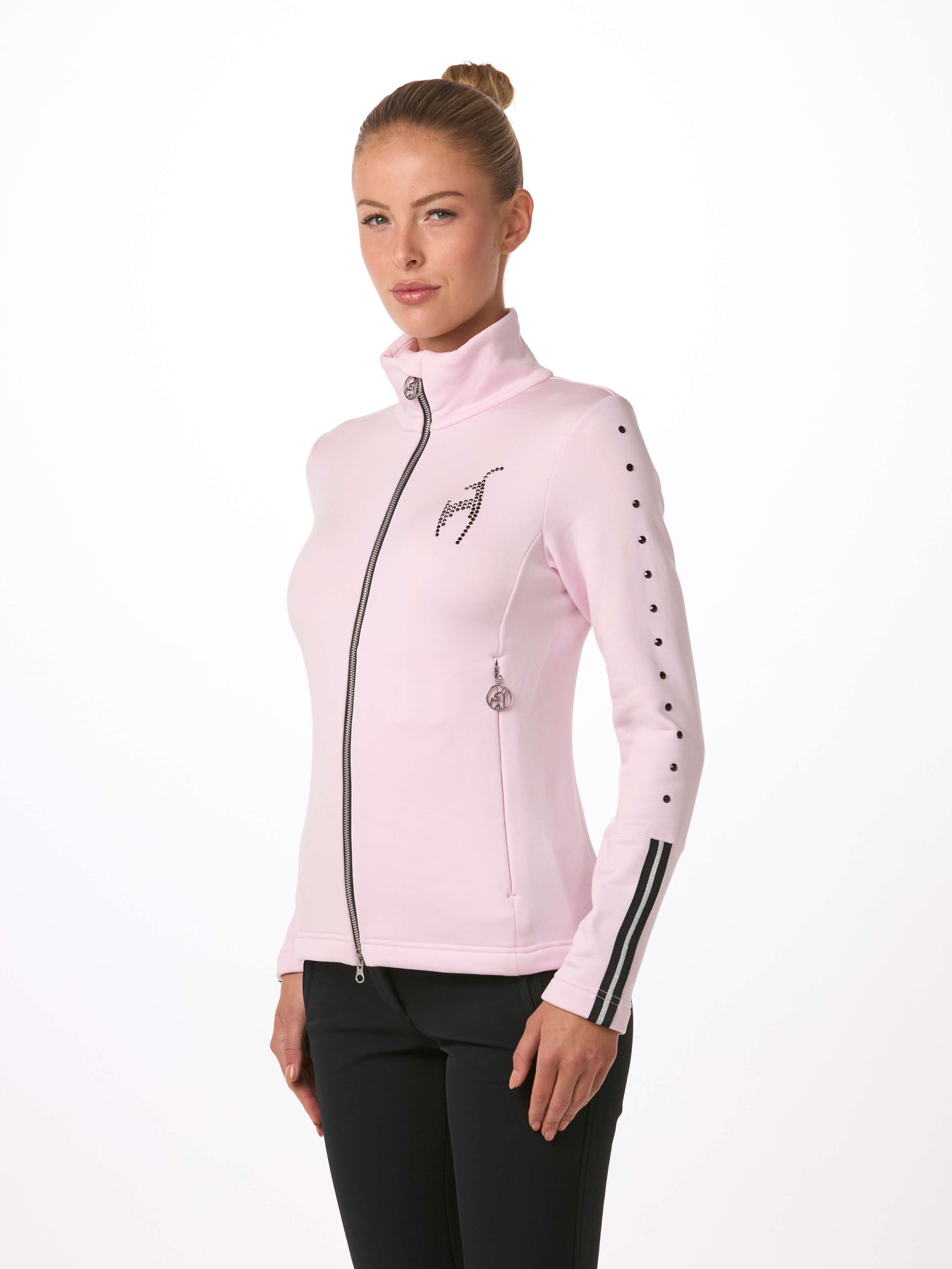 Verziert mit Kristallen von Swarovski® – mit dem Gams-Logo auf der Brust und Verzierungen entlang der Ärmel ist der KATHI SPECIAL Damen-Mid-Layer aus exquisitem italienischen Power-Stretch gefertigt. Der elastische und schnell trocknende Stoff speichert die Wärme und leitet Feuchtigkeit effizient ab. Die Vorderseite ist mit einem praktischen und stilvollen YKK 2-Wege-METALUXE® Spiegel-Reißverschluss ausgestattet, und die Seitentaschen sind sicher mit nahtlosen Reißverschlüssen verschlossen. Silberfarbene Streifen an den Ärmelbündchen verleihen dieser leichten Jacke von Toni Sailer einen zusätzlichen Hauch von Luxus.