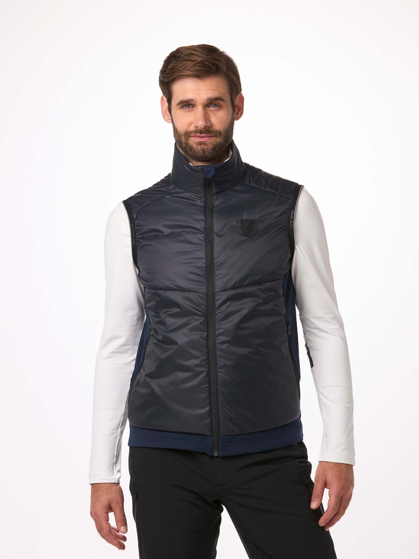 Die Herren Weste DEAN ist aus einem luxuriösen Super-Stretch-Stoff gefertigt, der für beste Bewegungsfreiheit sorgt. DEAN ist sehr flexibel für kältere und wärmere Tage entweder auf der Piste, Golfplatz oder in der Stadt.