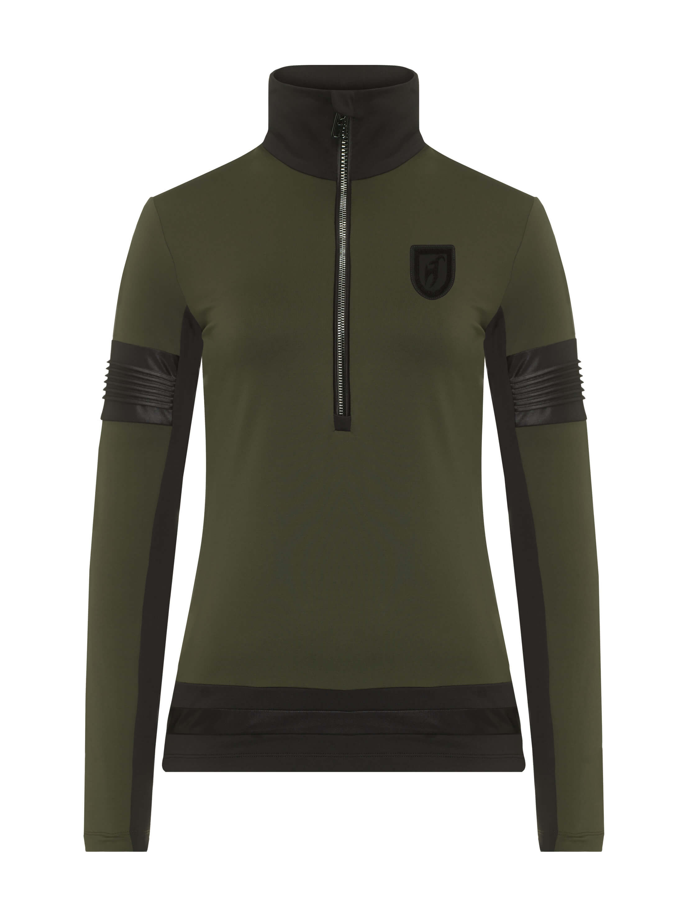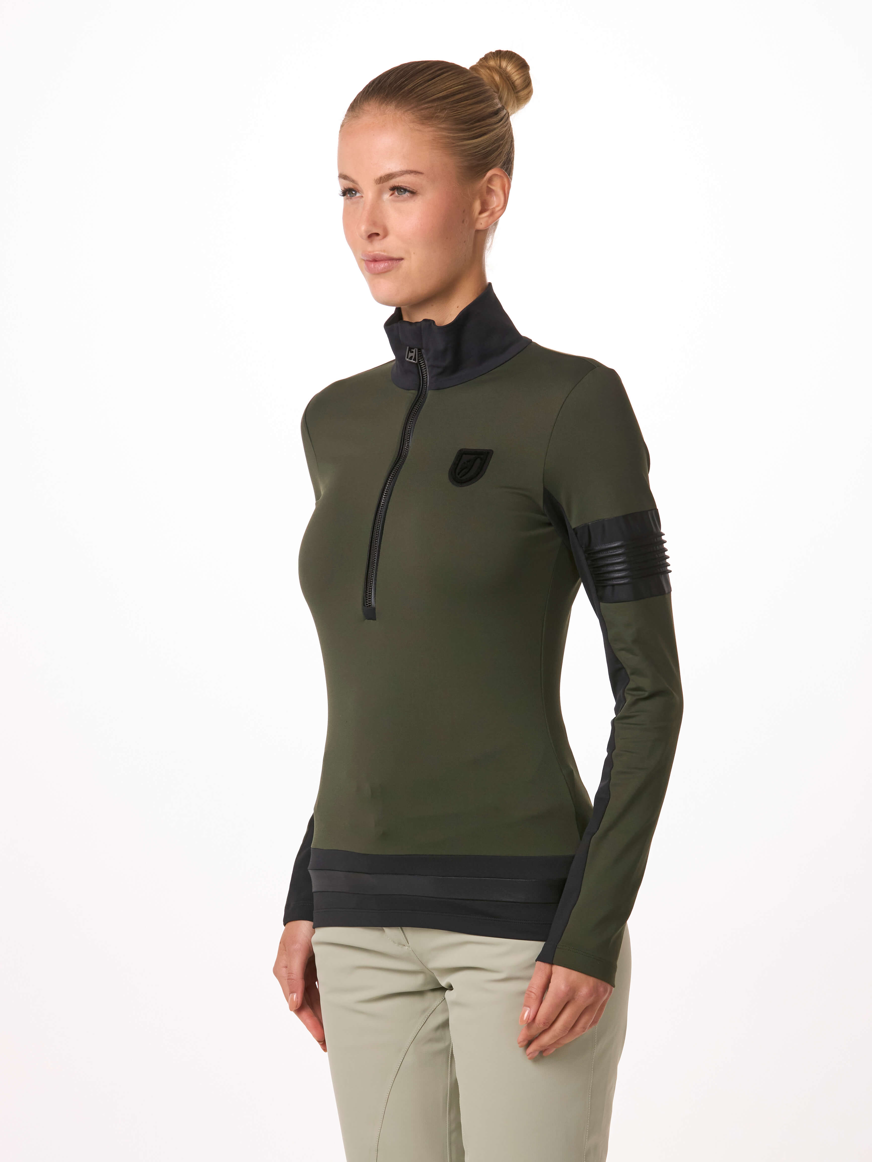 The KIKI first layer is not only one of our sporty basics - it is glam! Designed with black shiny details and a velvet logo patch on the chest. The KIKI matches with all jackets and pants. Warmth and freedom of movement, mixed with an easy care and quick drying fabric.