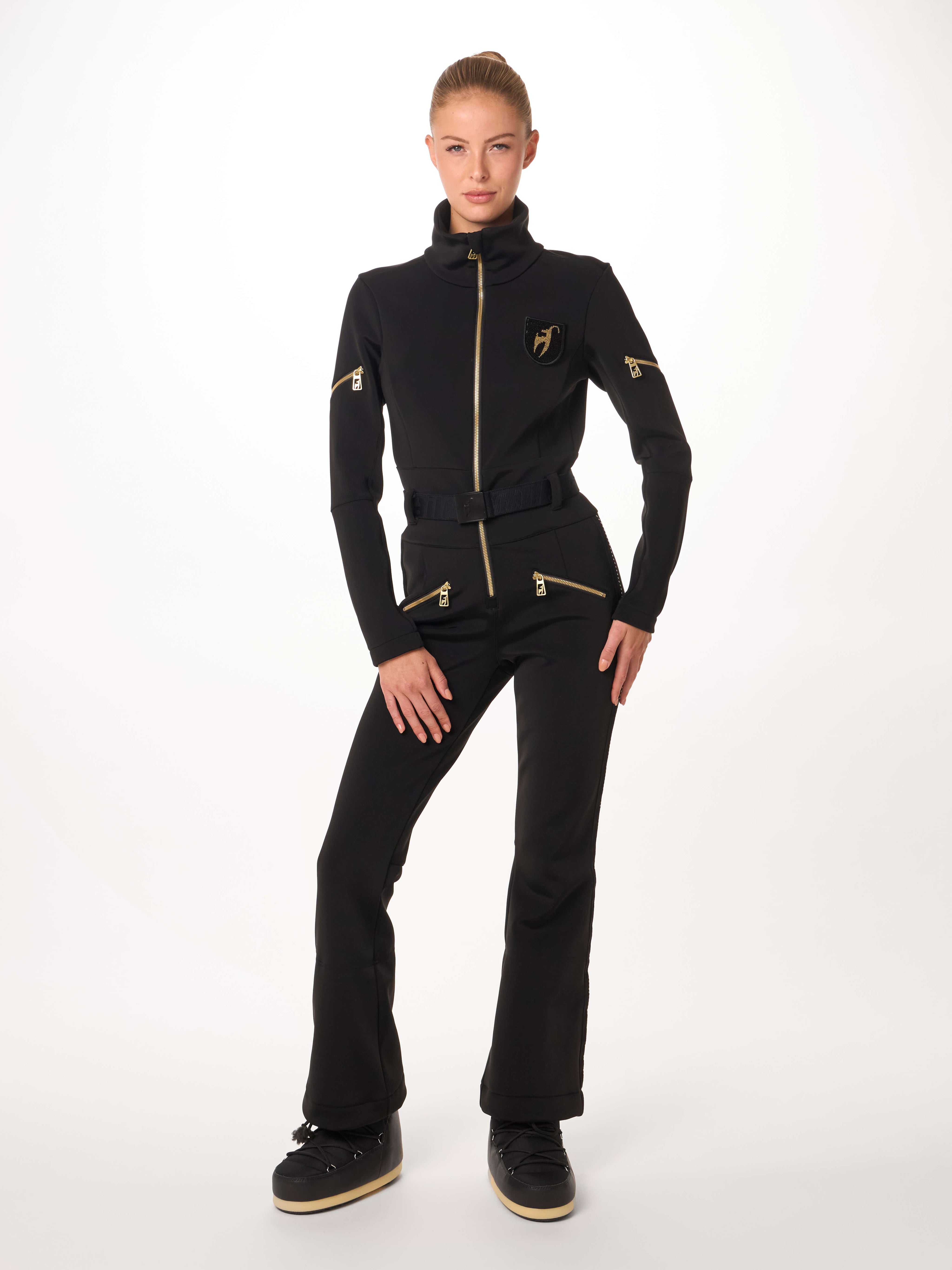 To celebrate our 20th anniversary, the LIVI GOLD PEARL overall is part of our special edition with handcrafted and detachable gold pearl logo and YKK® METALUXE® Mirror zippers. Really an extravagant style in swiss fabric for the slopes worldwide.
