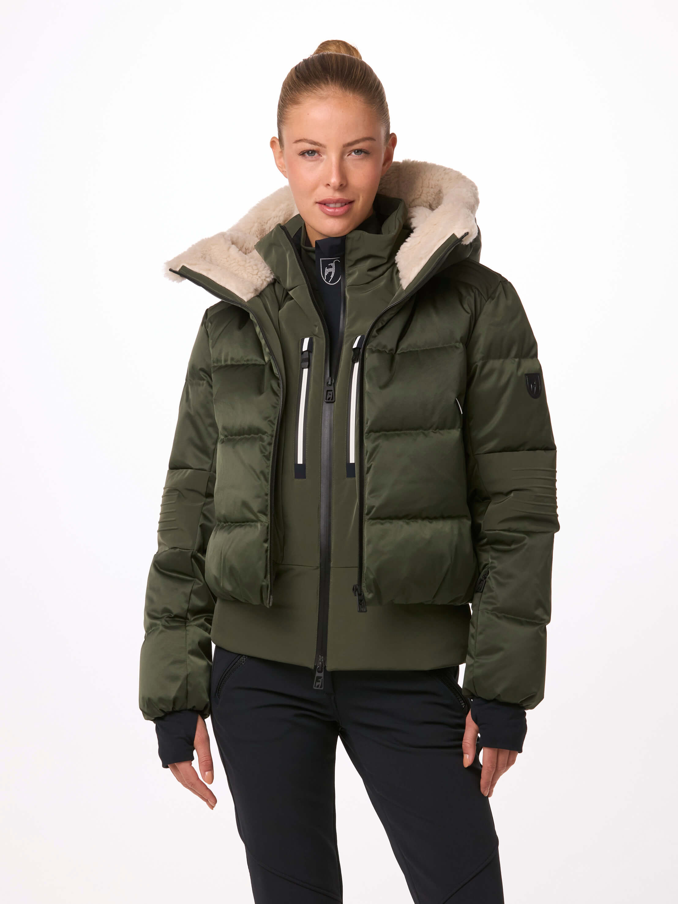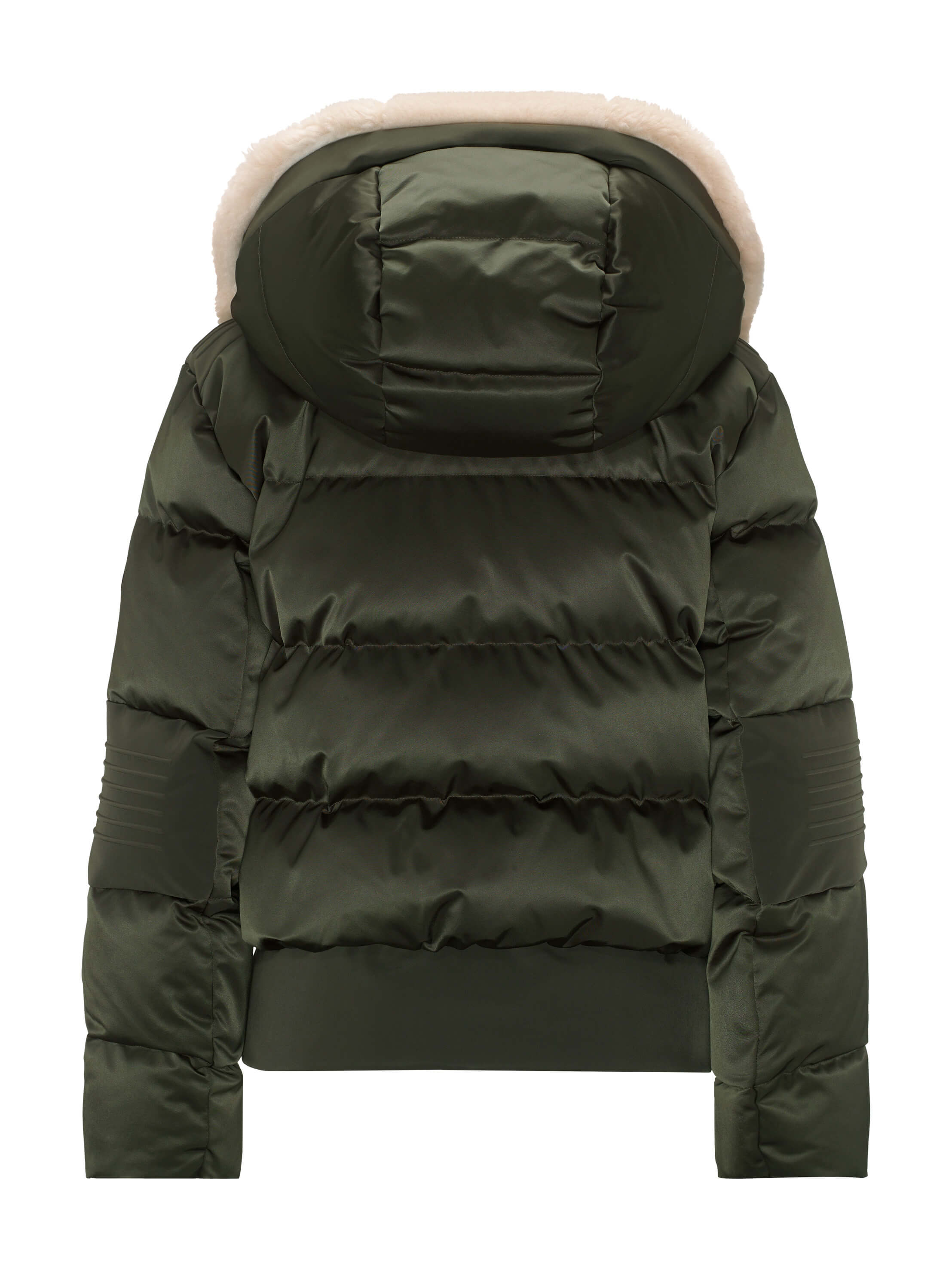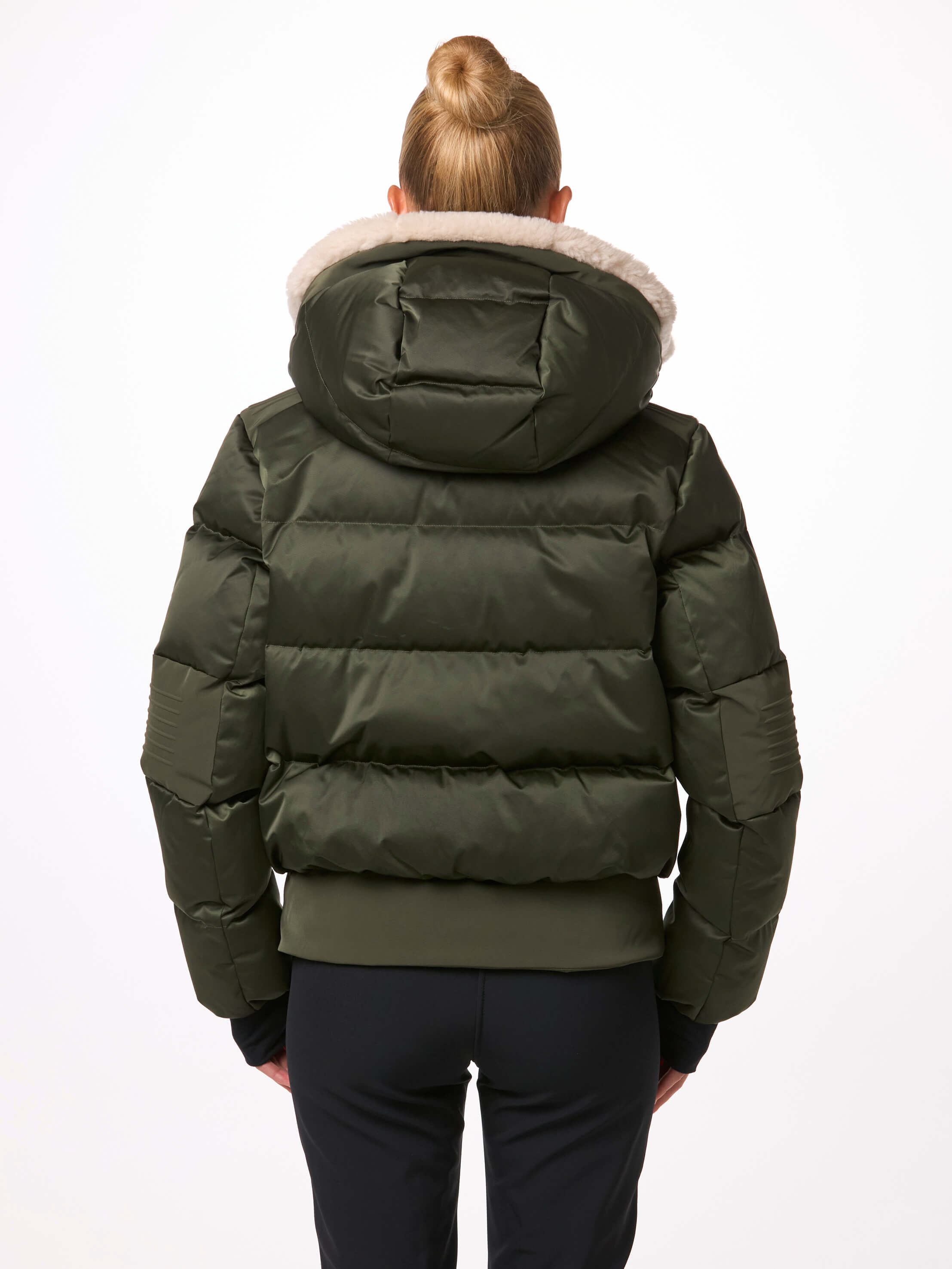 Slopes meets cities! The luxury SASHA jacket is a new satin puffer 2 in 1 look jacket with such a cozy teddy pile collar to keep you warm and comfortable. Certified down with 750 cuin fill power keeps you warm in the snow and on stormy streets. Tech zips show the perfect combination between Fashion X Function.