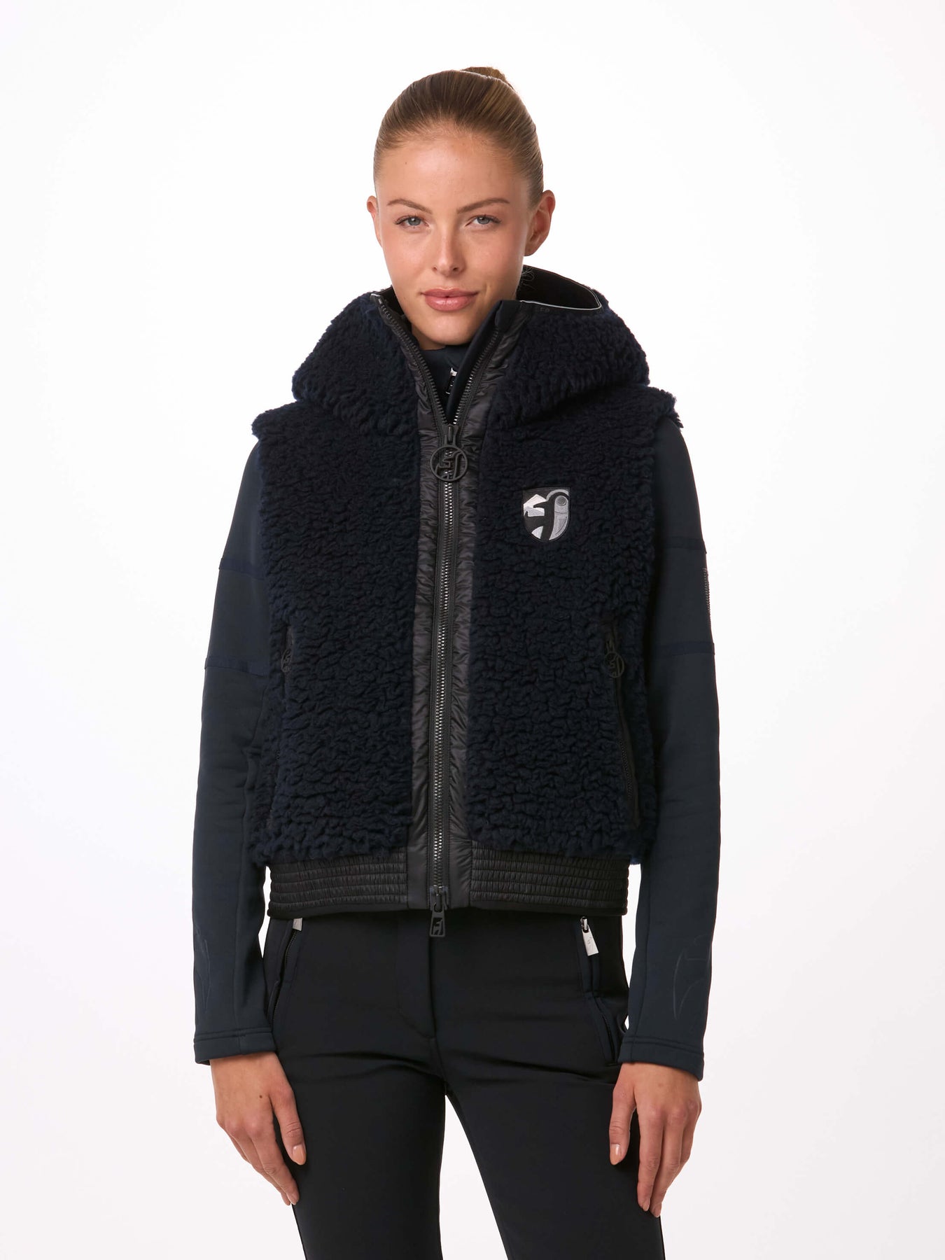 Le gilet JETTI est polyvalent - parfait pour les tenues d'après-ski comme pour le style urbain ou comme pièce maîtresse par-dessus votre combinaison. Un velours côtelé recyclé à poils hauts lui confère une note de haute couture, tandis que la softshell assure une excellente tenue et un grand confort. De plus, le gilet, composé d'un mélange de tissus italiens techniques, présente des propriétés respirantes, coupe-vent et imperméables grâce à une membrane PU à l'intérieur. Les fermetures à glissière YKK® METALUXE® sur le devant et les poches sont parfaitement assorties.