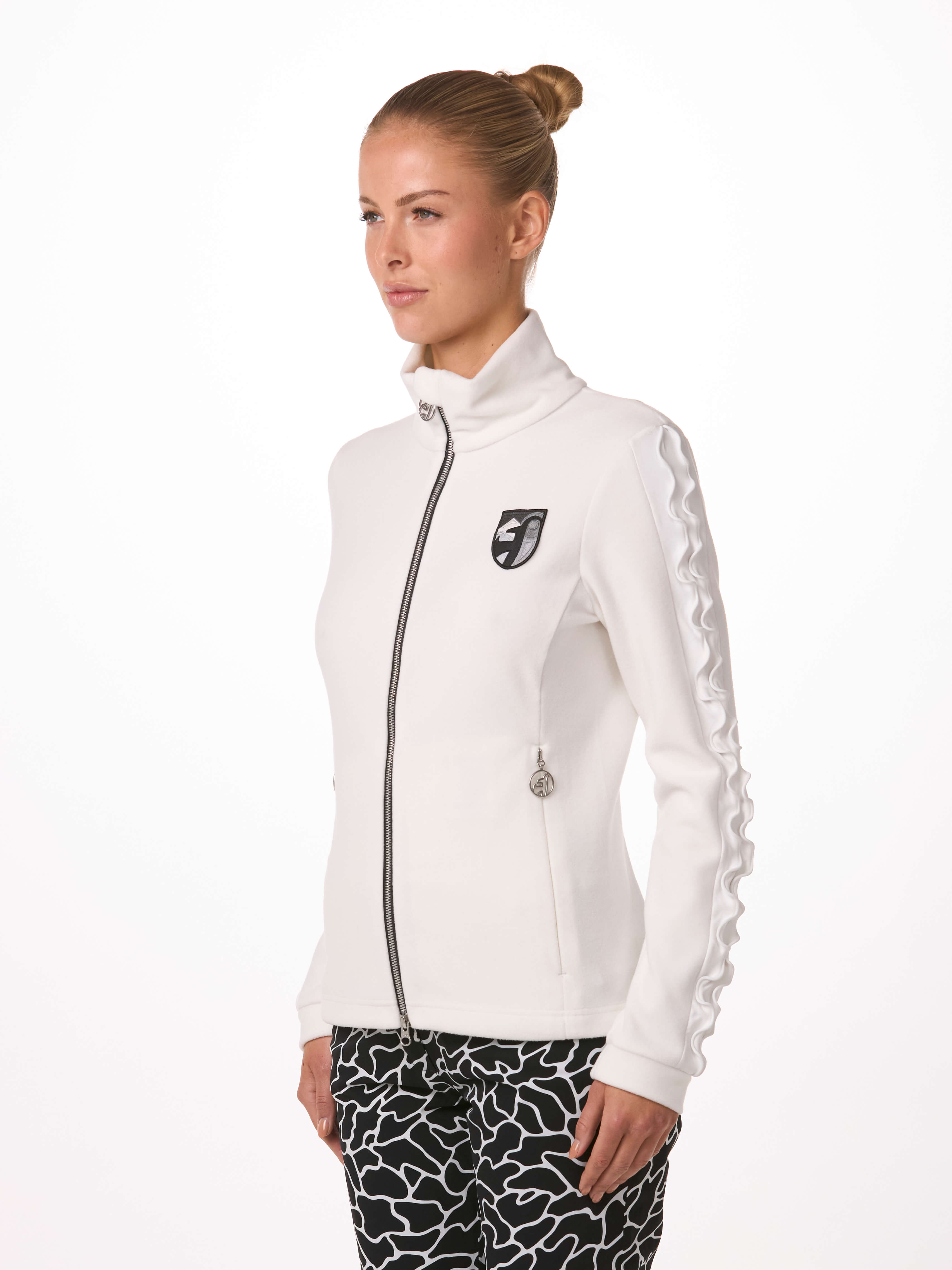 Avec ses volants féminins sur les manches et ses nouveaux patchs de broderie, la veste intermédiaire CARINNE est le mélange parfait entre la mode et la fonction. La CARINNE est le meilleur choix sur les pistes ou en ville.