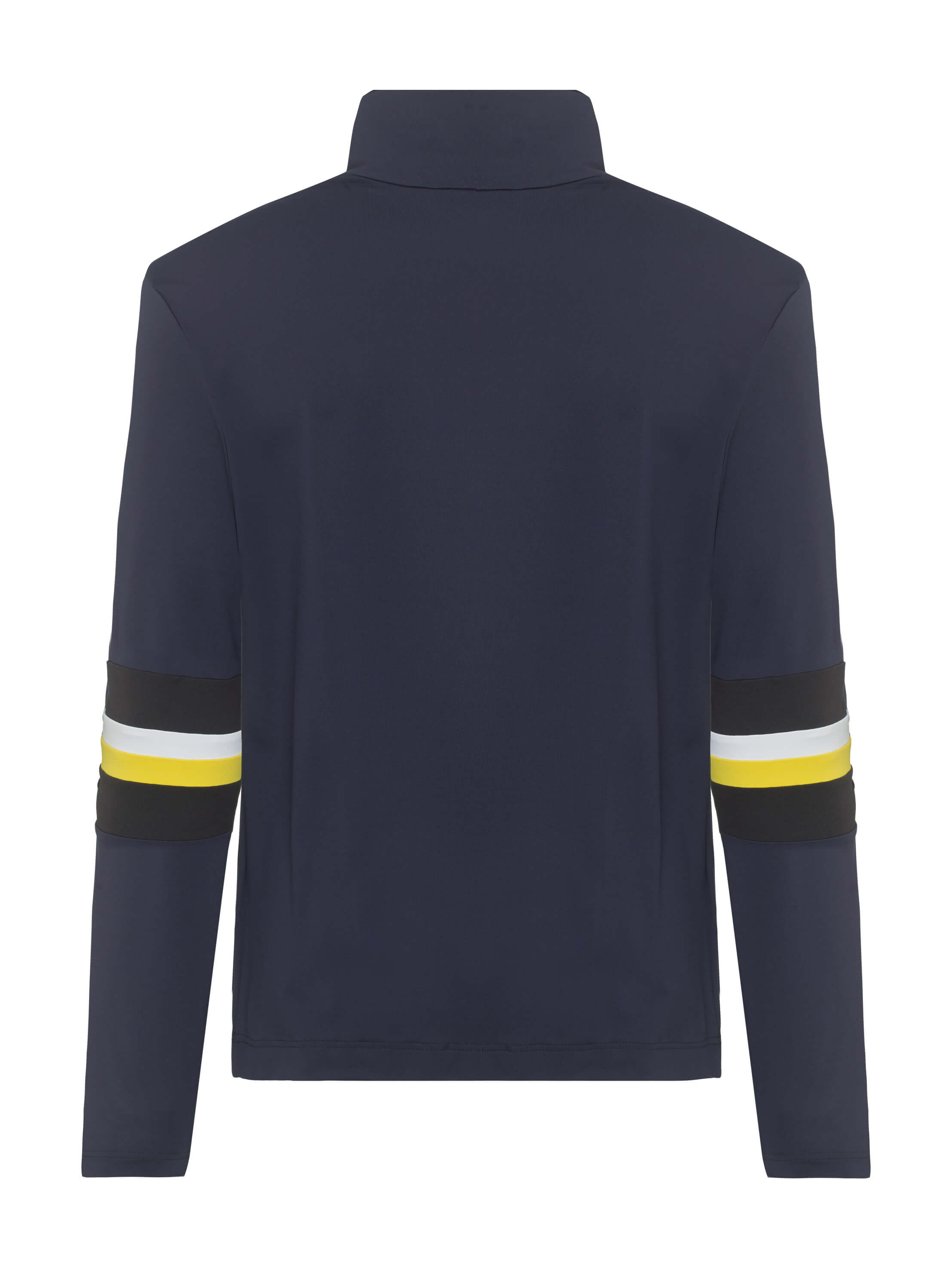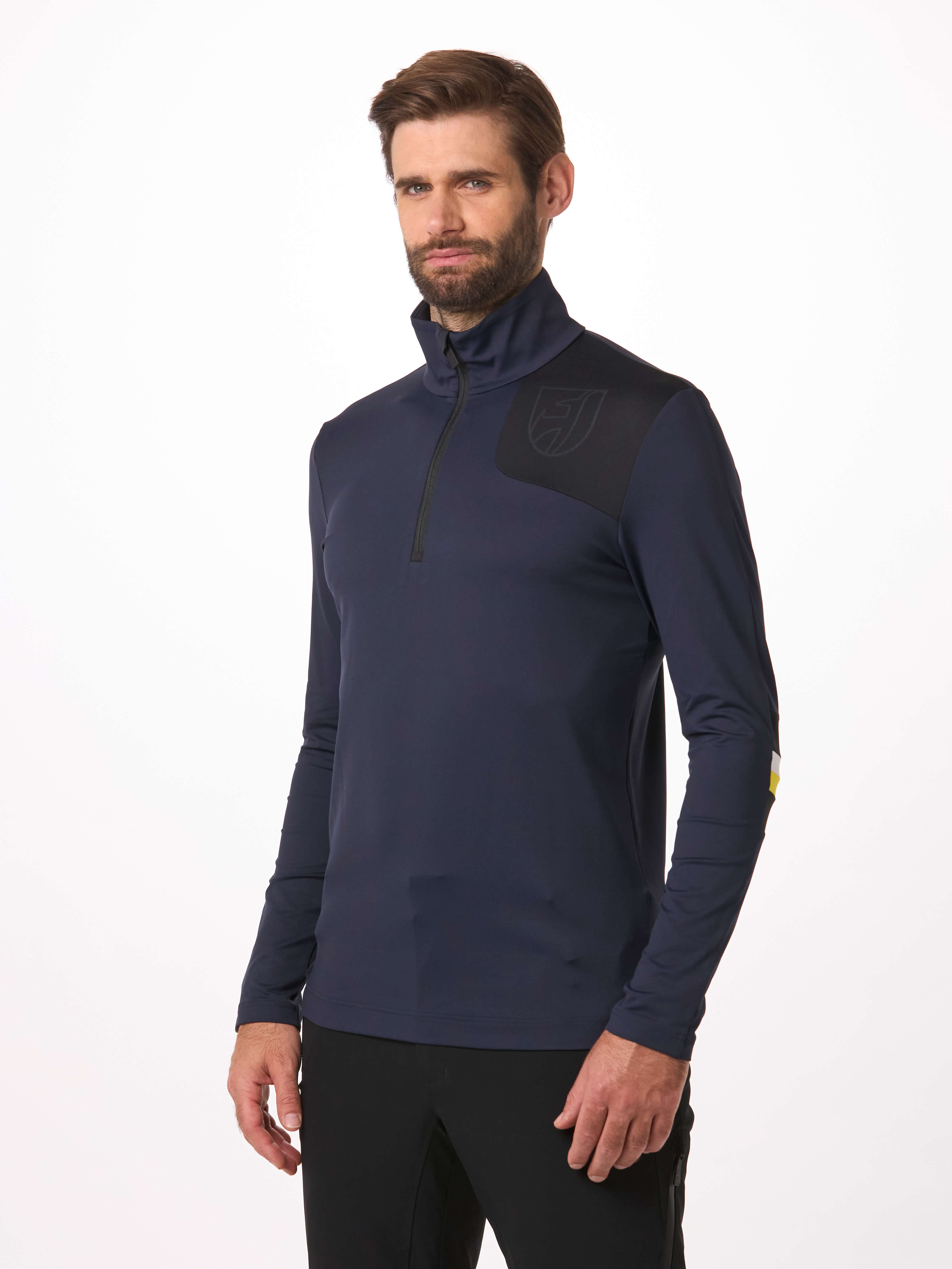 Classique revisité - le JEFF. Le tissu fonctionnel, fabriqué en France, est léger, respirant et il sèche rapidement. Le logo Toni Sailer est redéfini et placé sur la partie gauche de l'épaule, s’accordant parfaitement avec notre gamme de vestes.