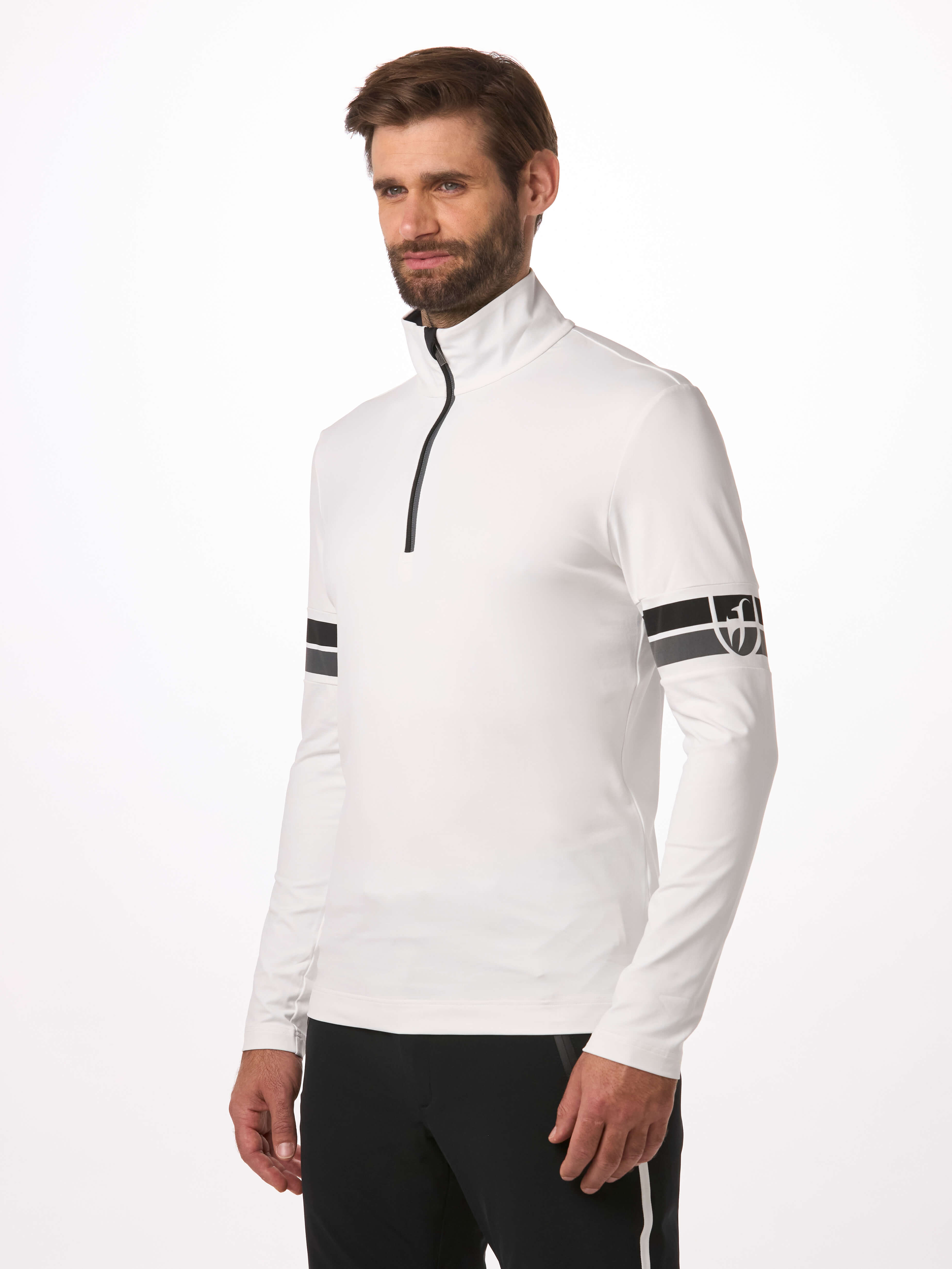 Conçue pour le confort et la performance sur les pistes, la première couche pour hommes MATEO est fabriquée à partir d'un jersey fonctionnel français léger, respirant et séchant rapidement. Les rayures caractéristiques ajoutent au look sportif, complété par une fermeture à glissière YKK®.