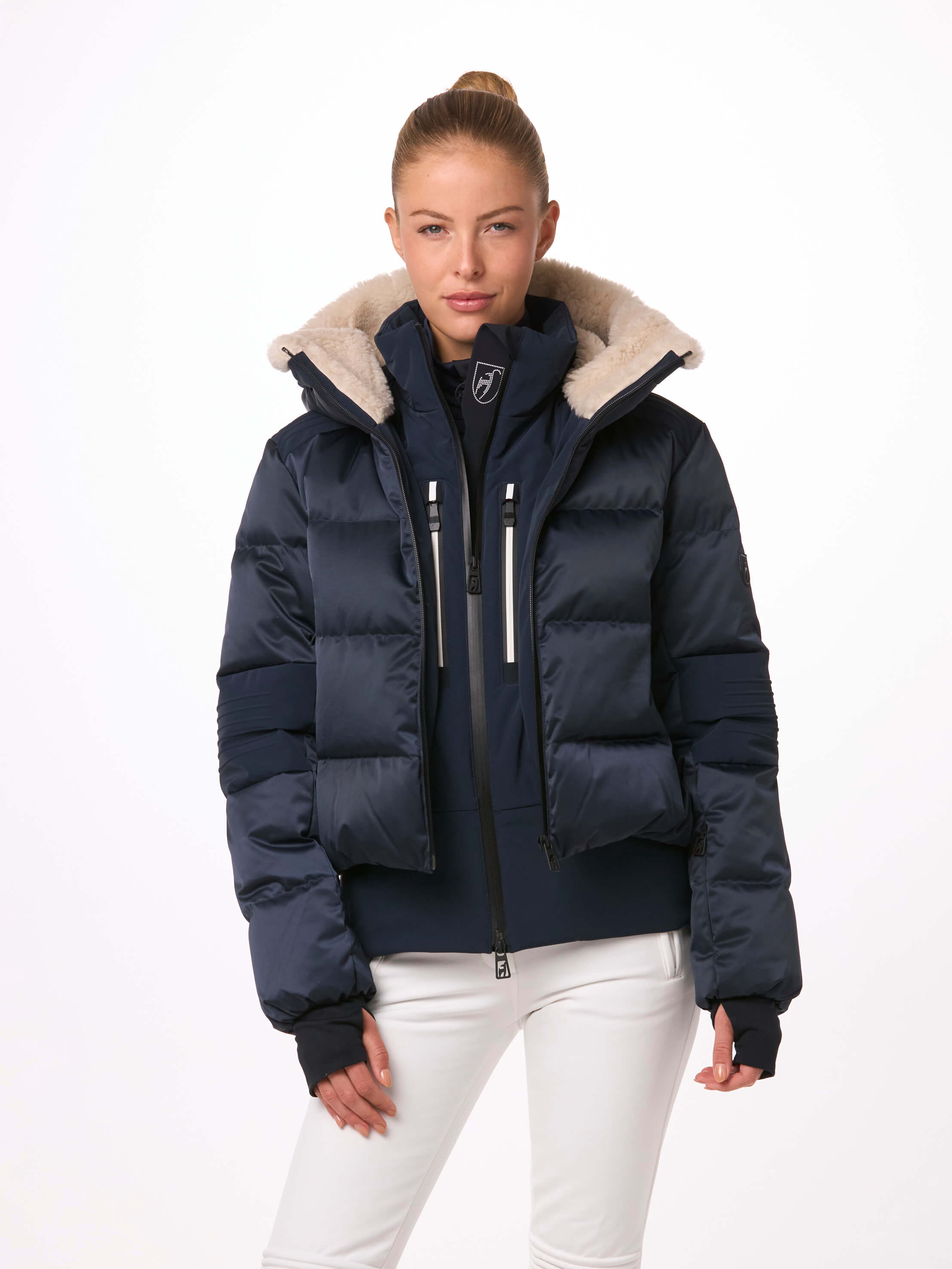 Les pentes rencontrent les villes ! La veste de luxe SASHA est une nouvelle veste 2 en 1 en satin ample avec un col en teddy pour vous garder au chaud et à l'aise. Le duvet certifié d'une capacité de 750 cuin vous garde au chaud dans la neige et dans les rues orageuses. Les fermetures éclair techniques sont la combinaison parfaite entre la mode et la fonction.