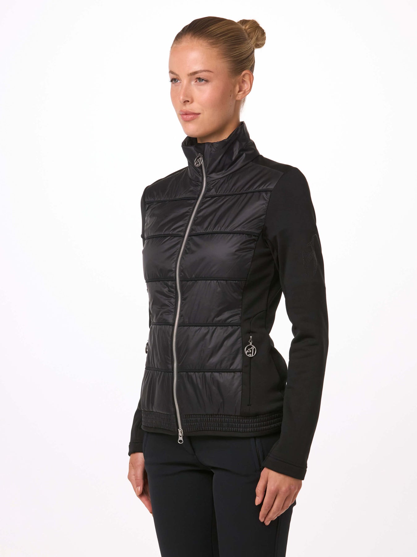 La veste intermédiaire THERESA est notre modèle d'isolation le plus chaud, avec du PrimaLoft® dans les parties avant pour vous garder au chaud, même pendant les journées d'hiver les plus froides. La THERESA vous procurera une sensation de bien-être et, grâce à son élasticité ultime, votre swing au ski ou au golf ne sera pas limité.