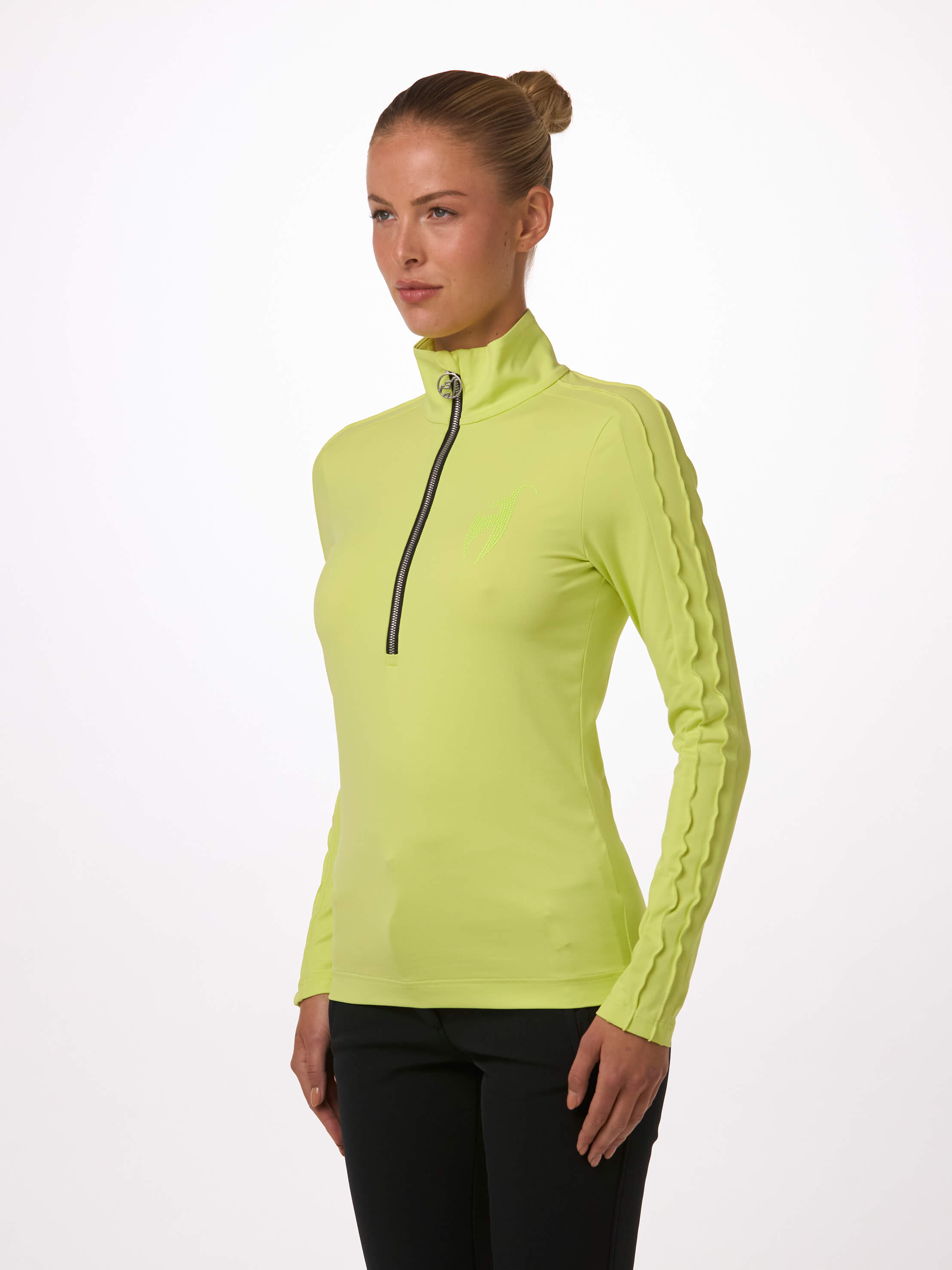 Luxe chic ! Avec ses volants spécialement travaillés sur les manches, le VRENI vous donne un look unique. Notre tissu de première couche offre chaleur, confort et liberté de mouvement à 100 %. Un logo hot fix en métal ton sur ton complète son look glamour.
