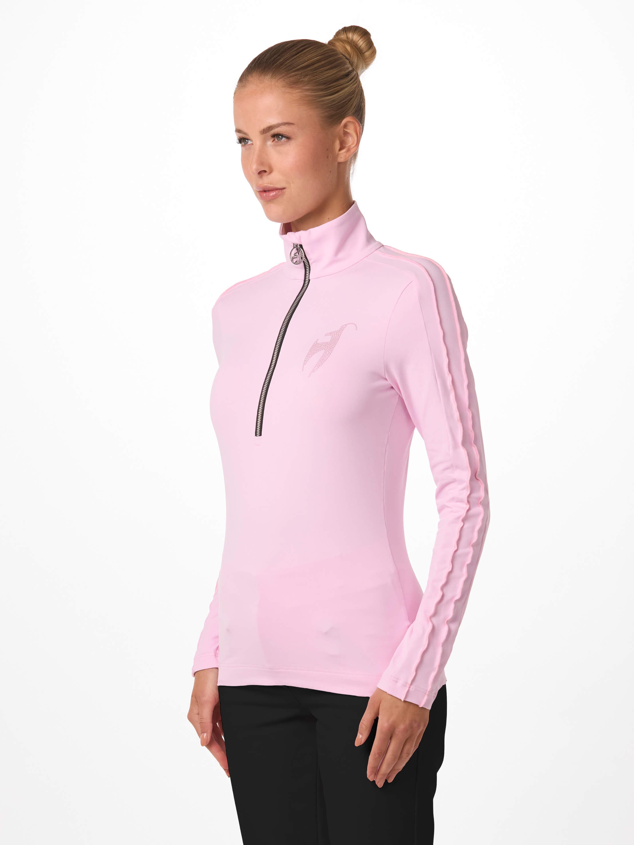 Luxe chic ! Avec ses volants spécialement travaillés sur les manches, le VRENI vous donne un look unique. Notre tissu de première couche offre chaleur, confort et liberté de mouvement à 100 %. Un logo hot fix en métal ton sur ton complète son look glamour.