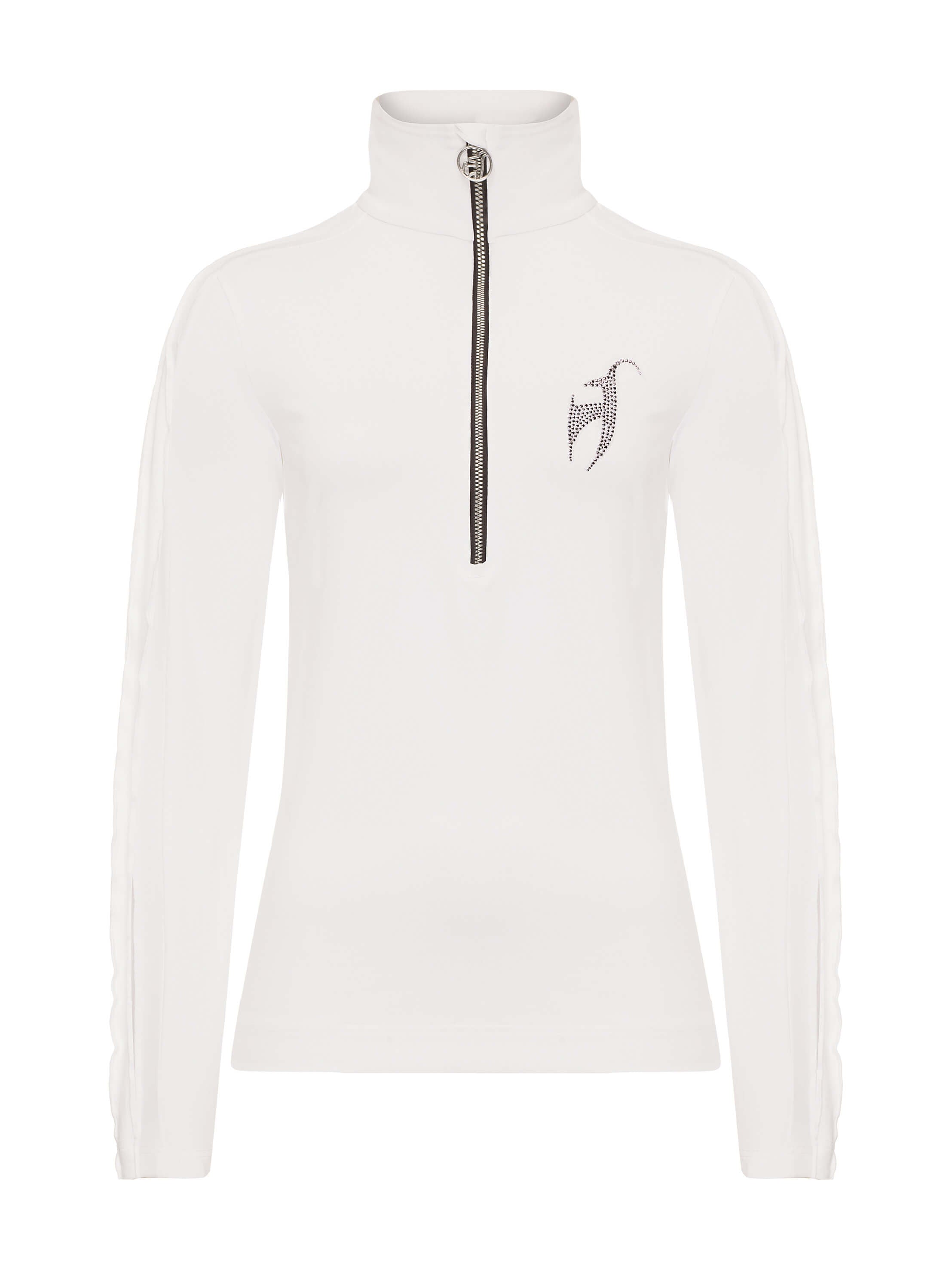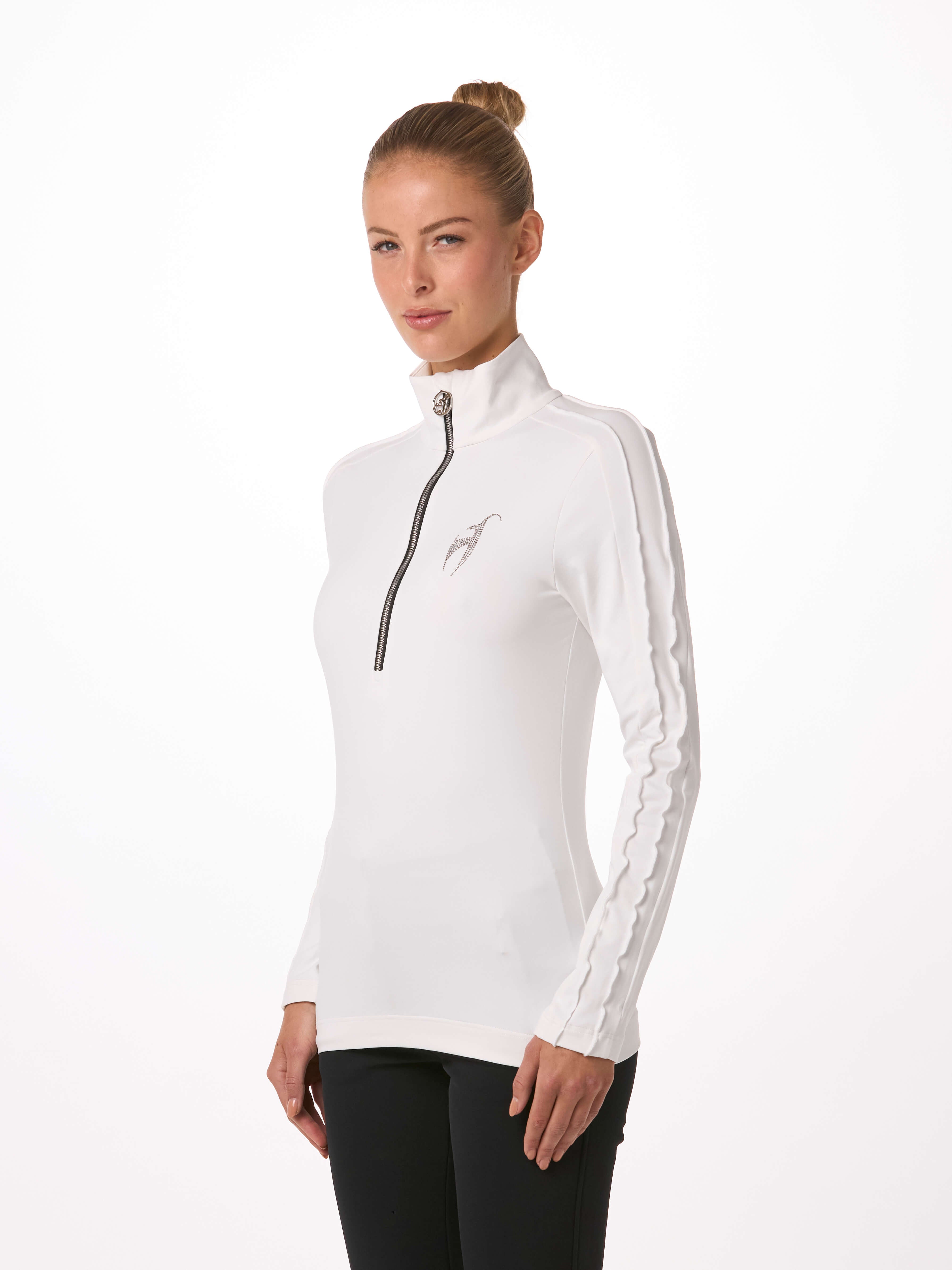 Les cristaux Swarovski® vous font briller de mille feux ! Le VRENI SPECIAL avec des volants spécialement travaillés sur les manches. Notre tissu de première couche offre chaleur, confort et liberté de mouvement à 100 %. Un look glamour sur les pistes et dans les chalets.