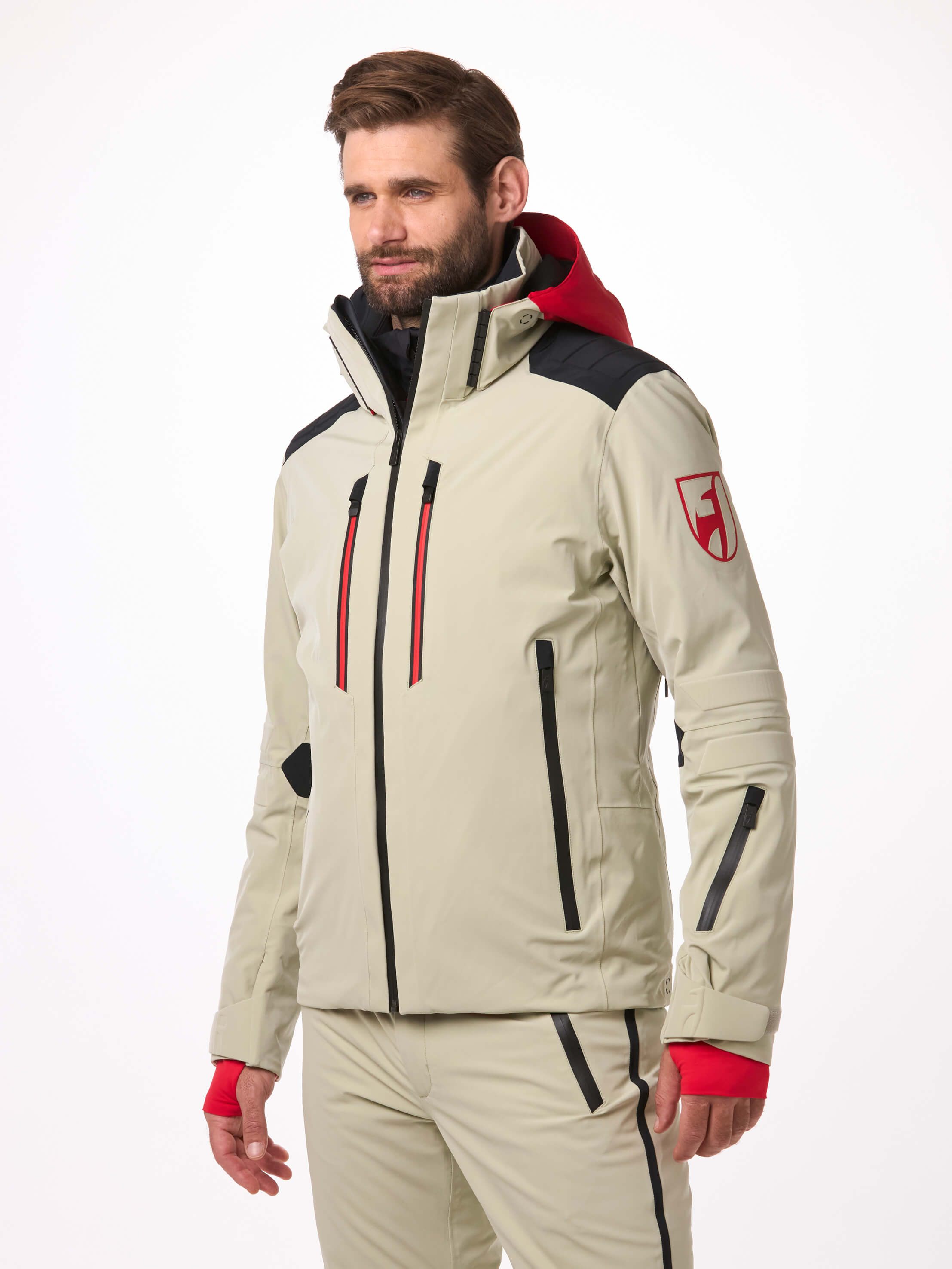 Azione pura! La giacca da sci da uomo EVAN in taglio Slim Fit è uno dei nostri modelli più tecnici, realizzata in lussuoso tessuto Premium 4-way Stretch. Le cerniere di ventilazione ottimizzate offrono un controllo perfetto del clima corporeo. I dettagli 3D su spalle e gomiti completano il look tecnico firmato Toni Sailer!