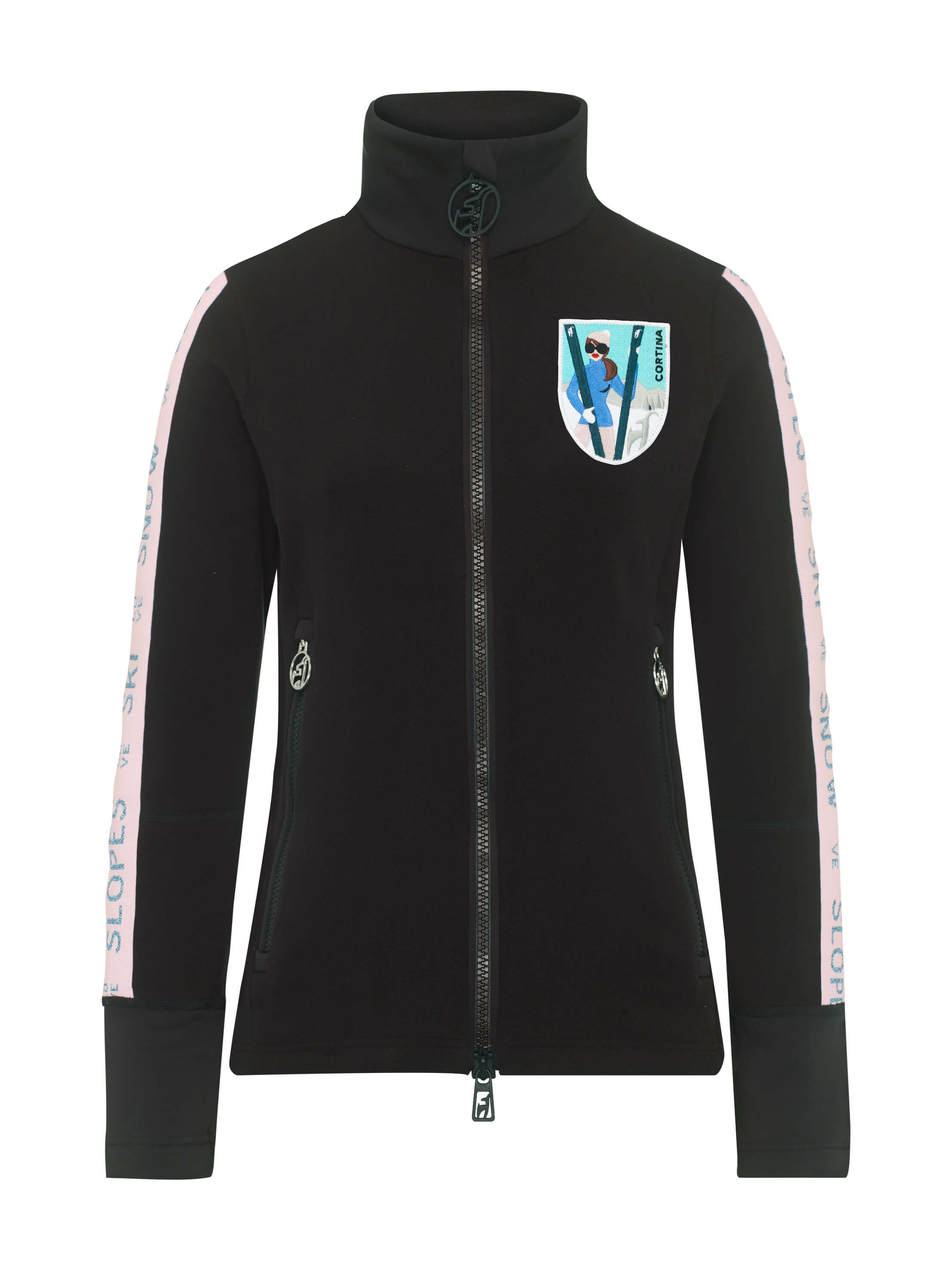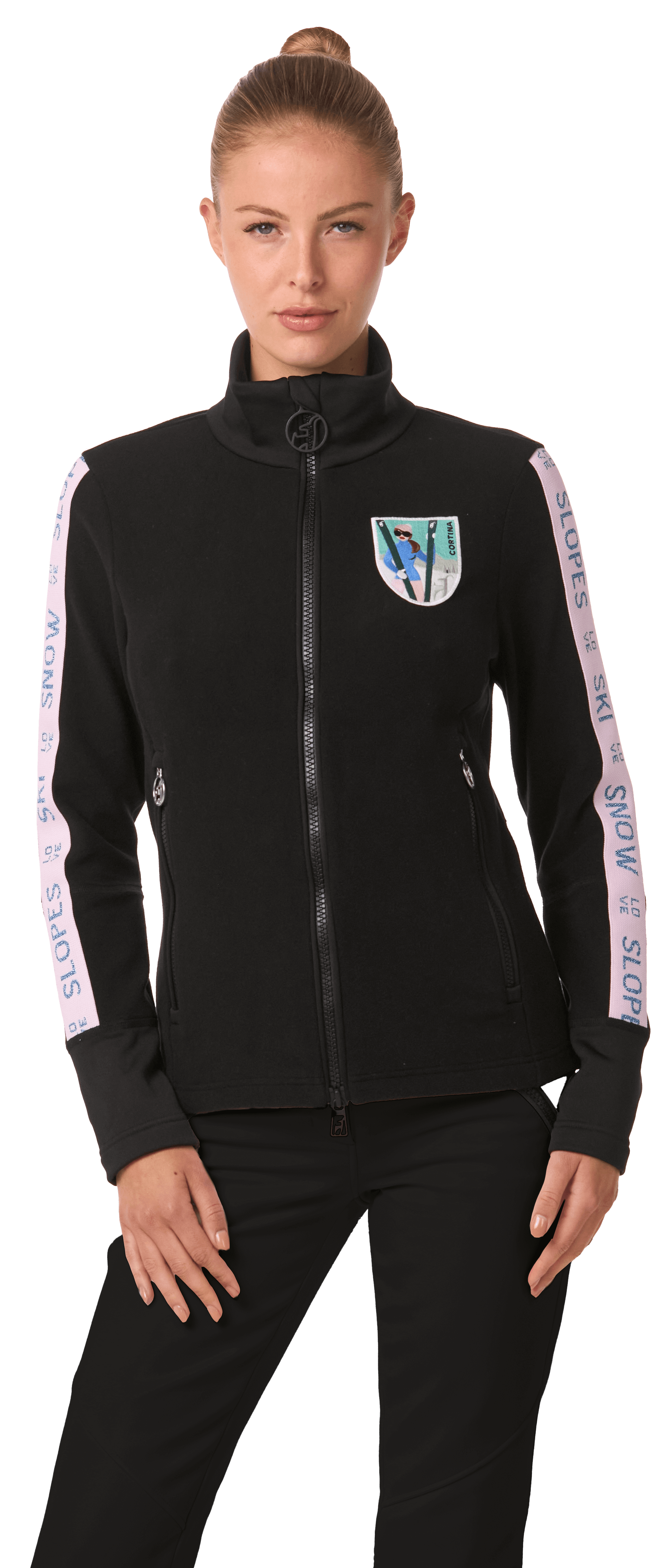 Moda e funzione – il mid layer da donna MANU mostra dettagli colorati con diverse patch ricamate sul petto, ispirati alla serie ALPES per il 20° anniversario di Toni Sailer. Le bande jacquard con scritte in lurex rendono MANU così speciale. Garantisce libertà di movimento e calore per le giornate più fredde.