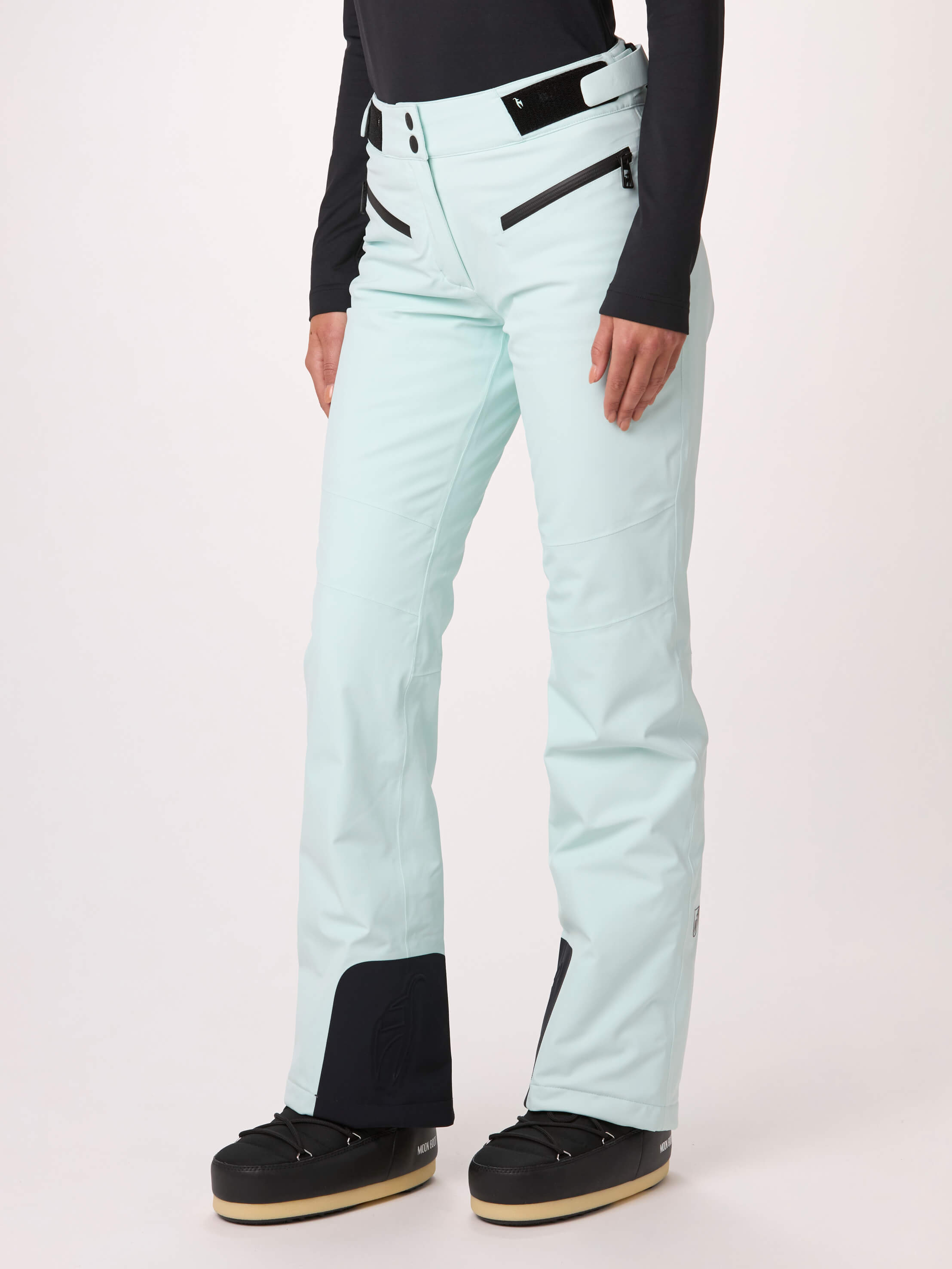 Die technische und komplett wasserdichte Damen Skihose AMIS beeindruckt mit perfekter Passform und maximaler Bewegungsfreiheit. Der japanische Premium 4-way Stretch dehnt sich mühelos in alle Richtungen, ebenso wie die PU-Membran, die zusätzlichen Schutz vor Feuchtigkeit bietet. Der höher geschnittene Bund im Rückenbereich wärmt optimal die Nieren, während die YKK® AquaGuard®-Reißverschlüsse die beiden Taschen zuverlässig gegen Wasser abdichten. Feine Details der Skihose umfassen das geformte Toni Sailer Gams Logo am Kantenschutz.
