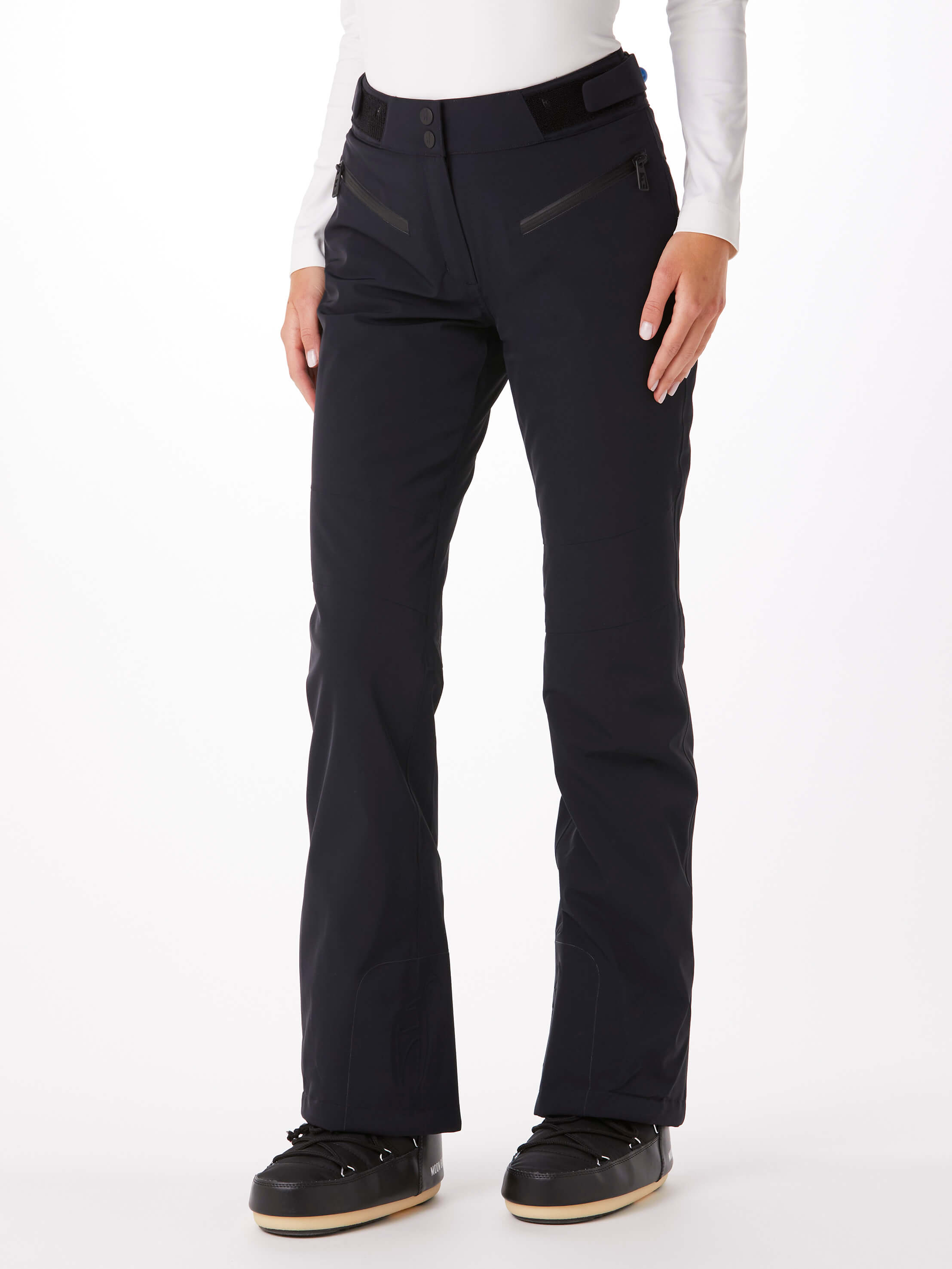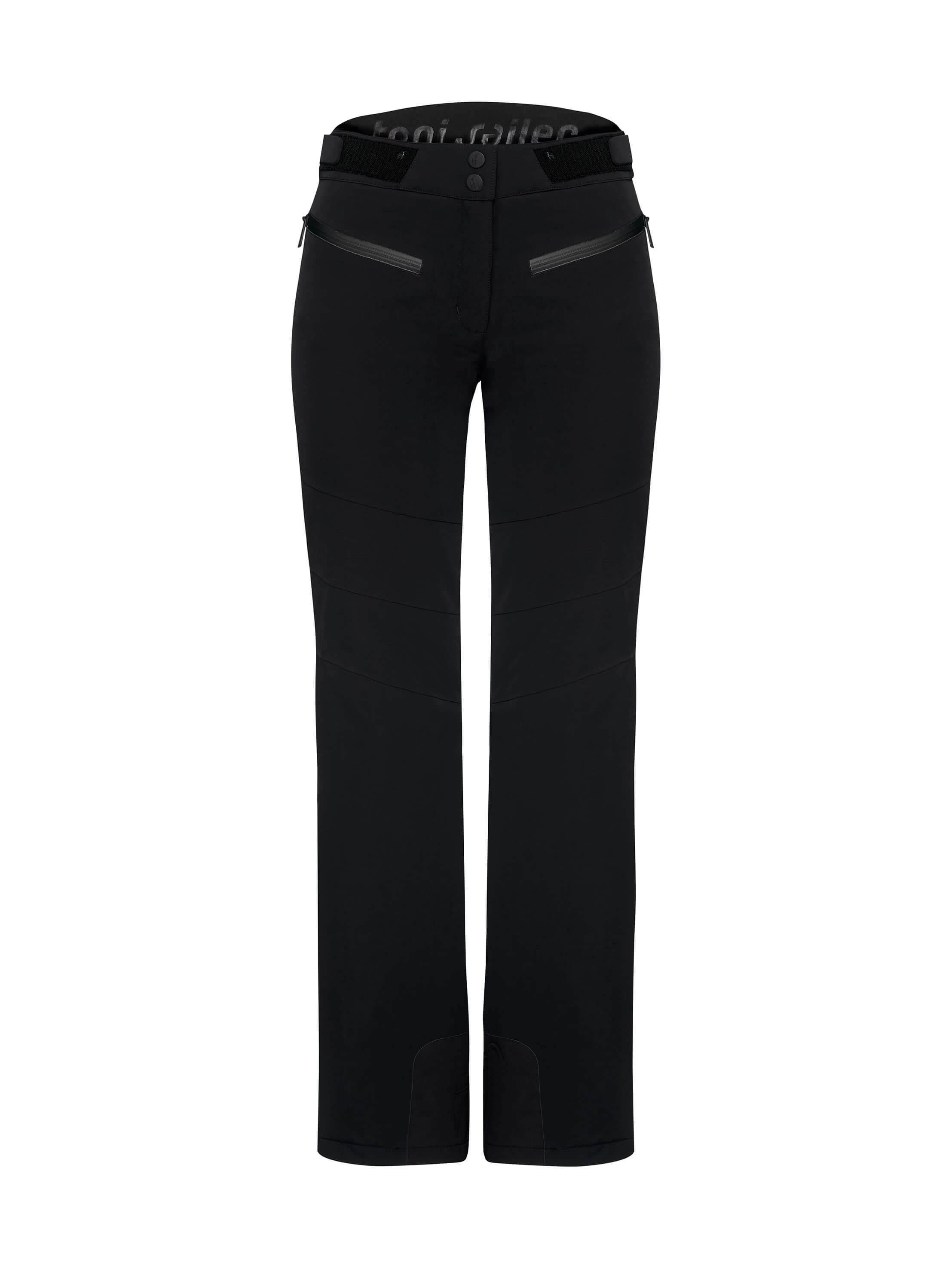 Die technische und komplett wasserdichte Damen Skihose AMIS beeindruckt mit perfekter Passform und maximaler Bewegungsfreiheit. Der japanische Premium 4-way Stretch dehnt sich mühelos in alle Richtungen, ebenso wie die PU-Membran, die zusätzlichen Schutz vor Feuchtigkeit bietet. Der höher geschnittene Bund im Rückenbereich wärmt optimal die Nieren, während die YKK® AquaGuard®-Reißverschlüsse die beiden Taschen zuverlässig gegen Wasser abdichten. Feine Details der Skihose umfassen das geformte Toni Sailer Gams Logo am Kantenschutz.