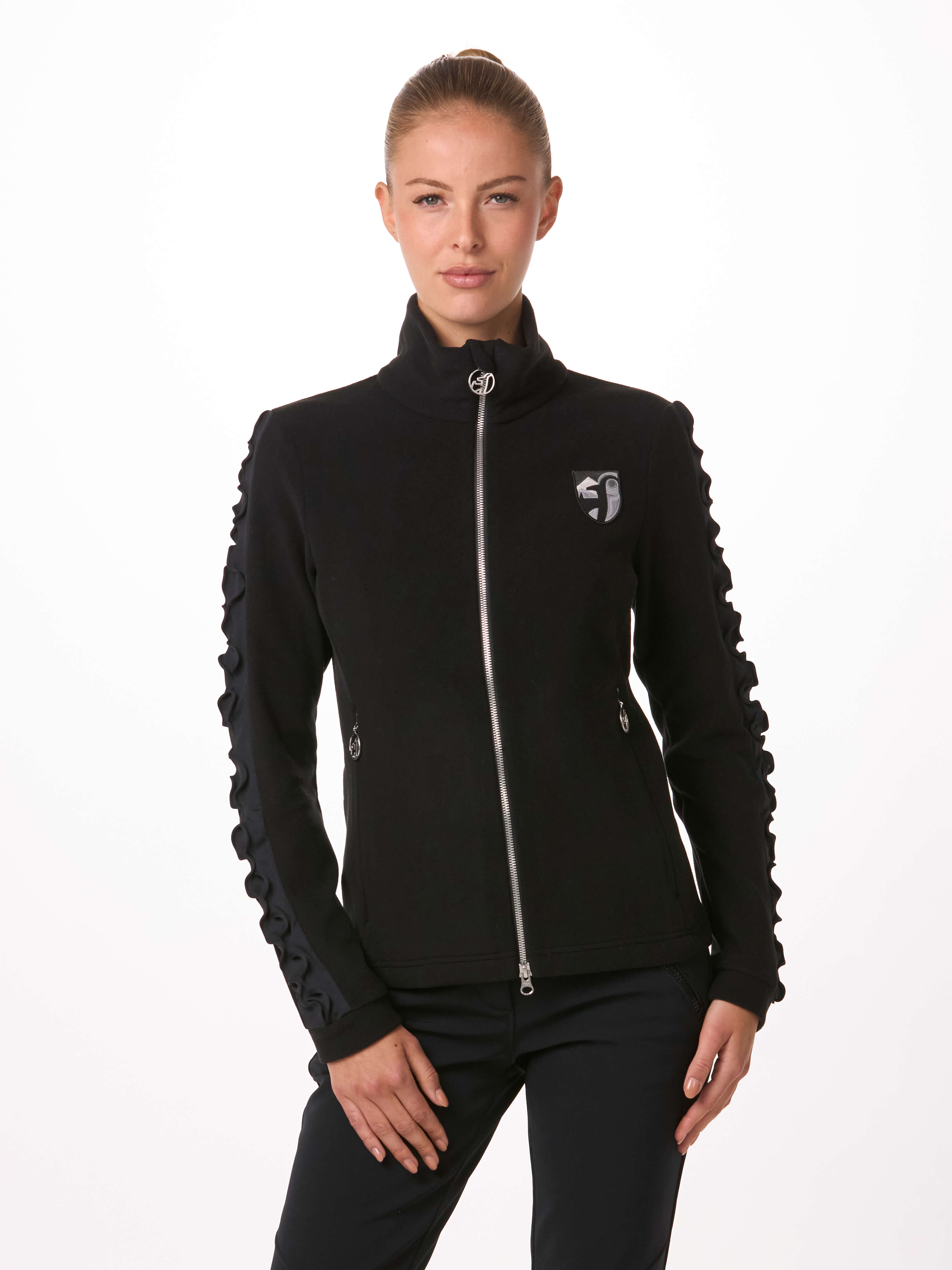 Der Mid Layer CARINNE von Toni Sailer vereint feminine Rüschendetails an den Ärmeln mit modernen Stickerei-Patches und schafft so die perfekte Balance aus Stil und Funktion. Er bietet zuverlässige Wärme und hohen Komfort, wodurch er sowohl auf der Piste als auch in der Stadt die ideale Wahl ist.