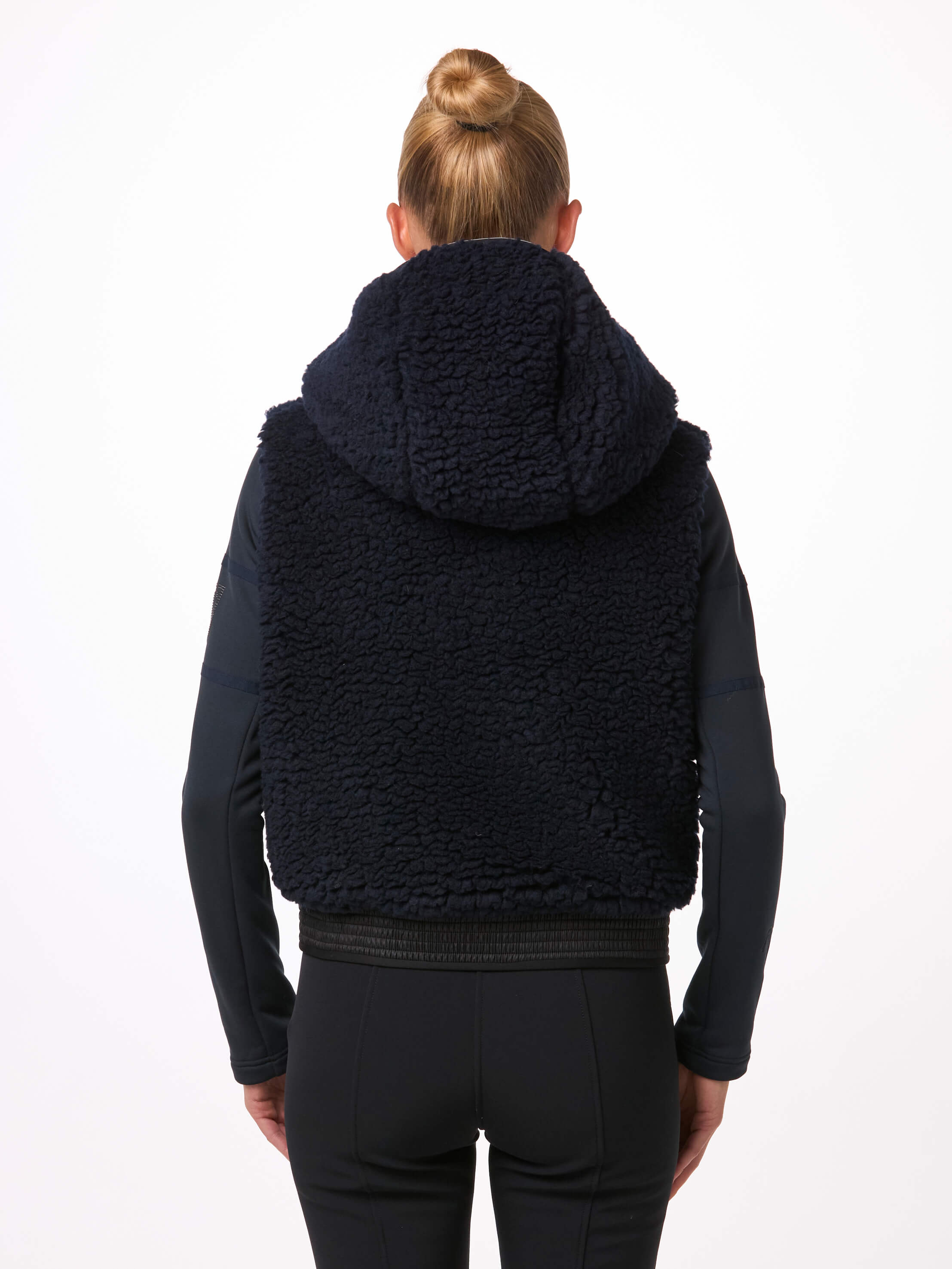 Die Damen-Weste JETTI von Toni Sailer ist vielseitig – perfekt für Après-Ski-Outfits, urbanen Stil oder als It-Piece über Ihrem Overall. Ein hochfloriger, recycelter Teddy-Pile verleiht ihr eine High-Fashion-Note, während das Softshell-Material eine exzellente Passform und Komfort garantiert. Darüber hinaus bietet die Weste dank einer PU-Membran auf der Innenseite atmungsaktive, winddichte und wasserdichte Eigenschaften. Die YKK® METALUXE®-Reißverschlüsse an der Vorderseite und den Taschen sind die perfekte Ergänzung.