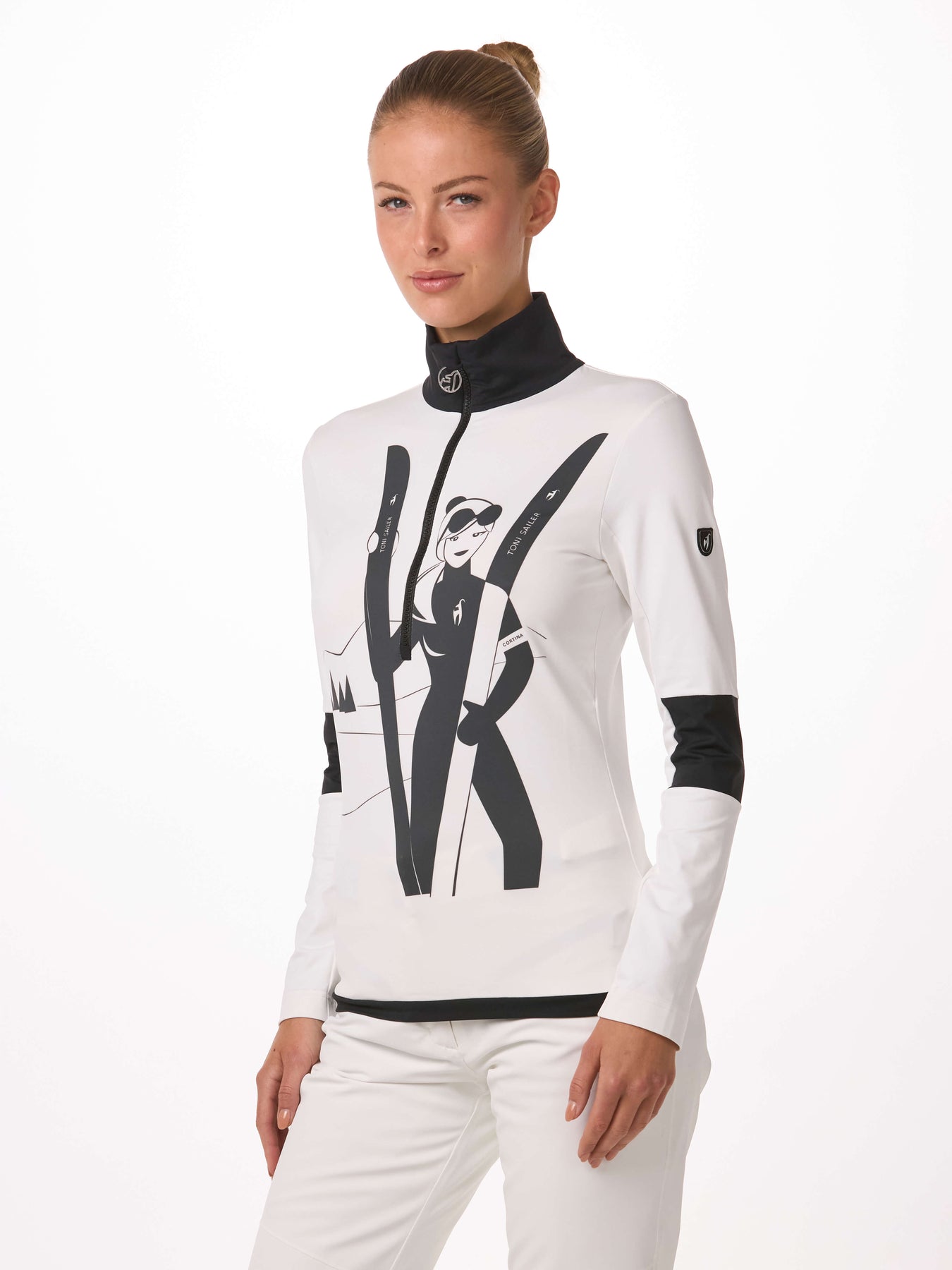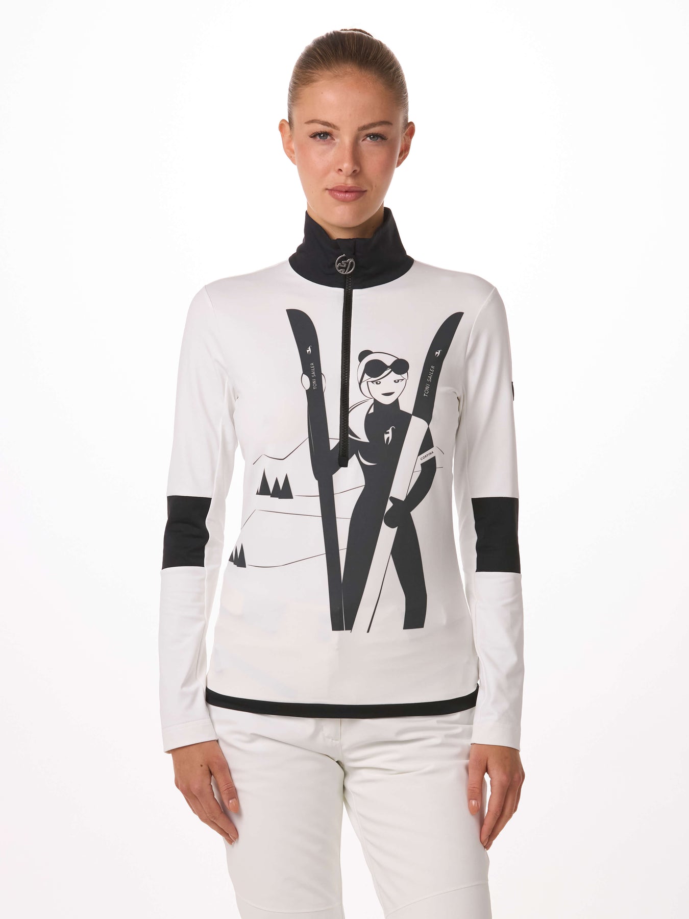 Das sportliche Design des Damen First Layers YUMI, inspiriert von unserem ikonischen ALPES-Print, ergänzt unsere Allover-Jacken und -Hosen perfekt. Exklusiv von der Grafikdesignerin Daniela Könn in Zusammenarbeit mit dem Toni Sailer Design-Team entwickelt, überzeugt YUMI nicht nur optisch, sondern auch funktional: pflegeleicht, schnell trocknend und ideal für aktive Tage.