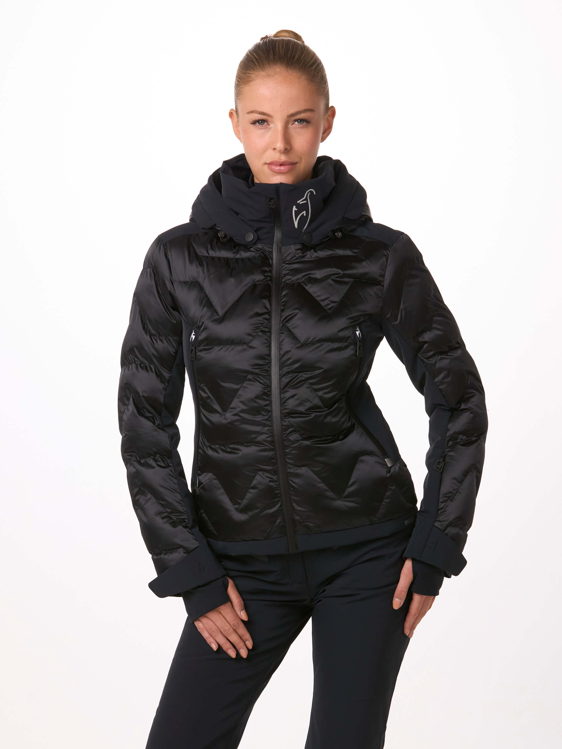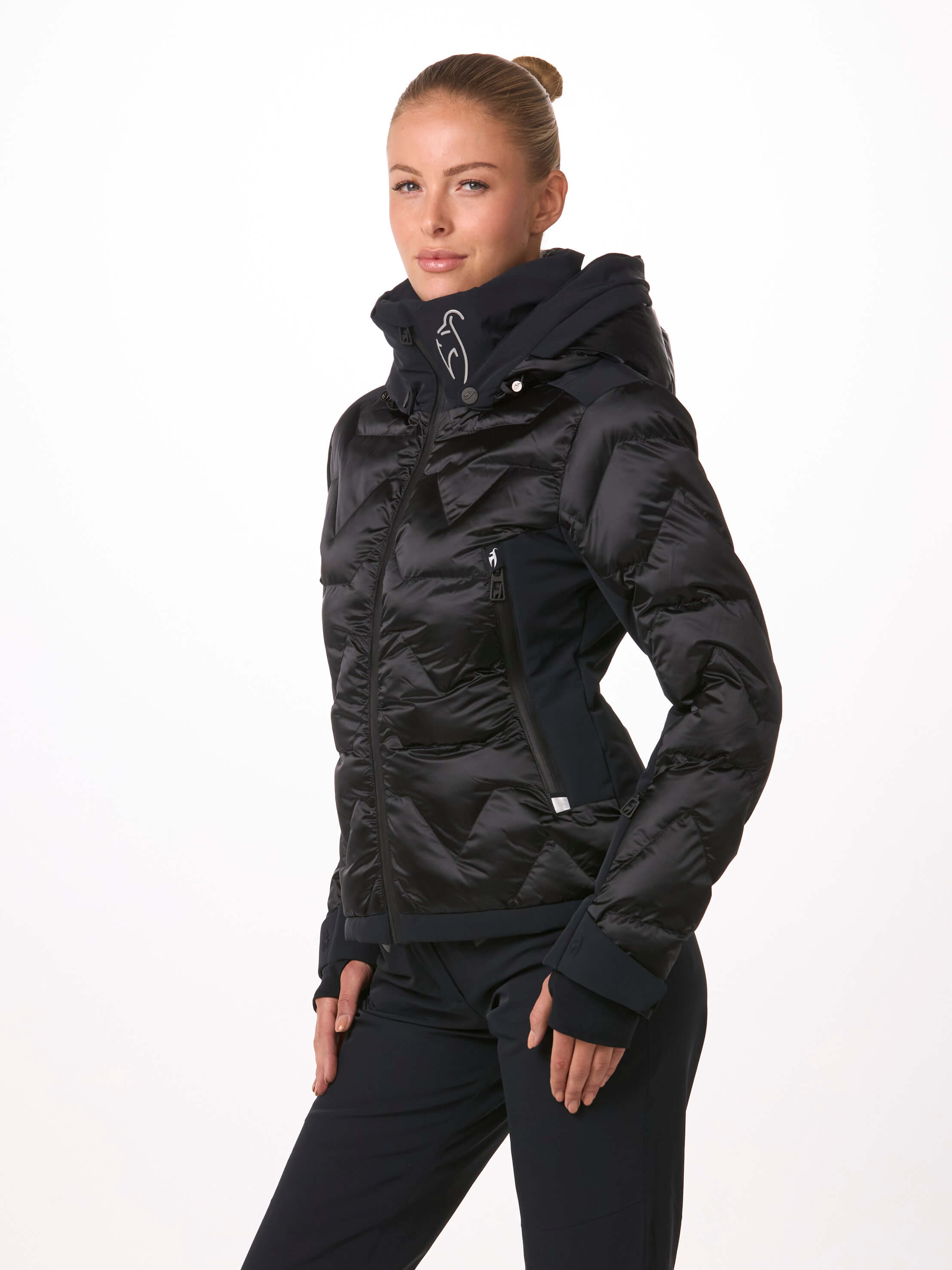 Ausgestattet mit allen funktionalen Details der Damen Skijacke ZOE zeigt diese SPLENDID-Version die Extravaganz unseres luxuriösen glänzenden Nylonstoffs. Die ZOE SPLENDID von Toni Sailer bietet Ihnen 100 % Bewegungsfreiheit mit ihrem Premium 4-way Stretch am Rücken.